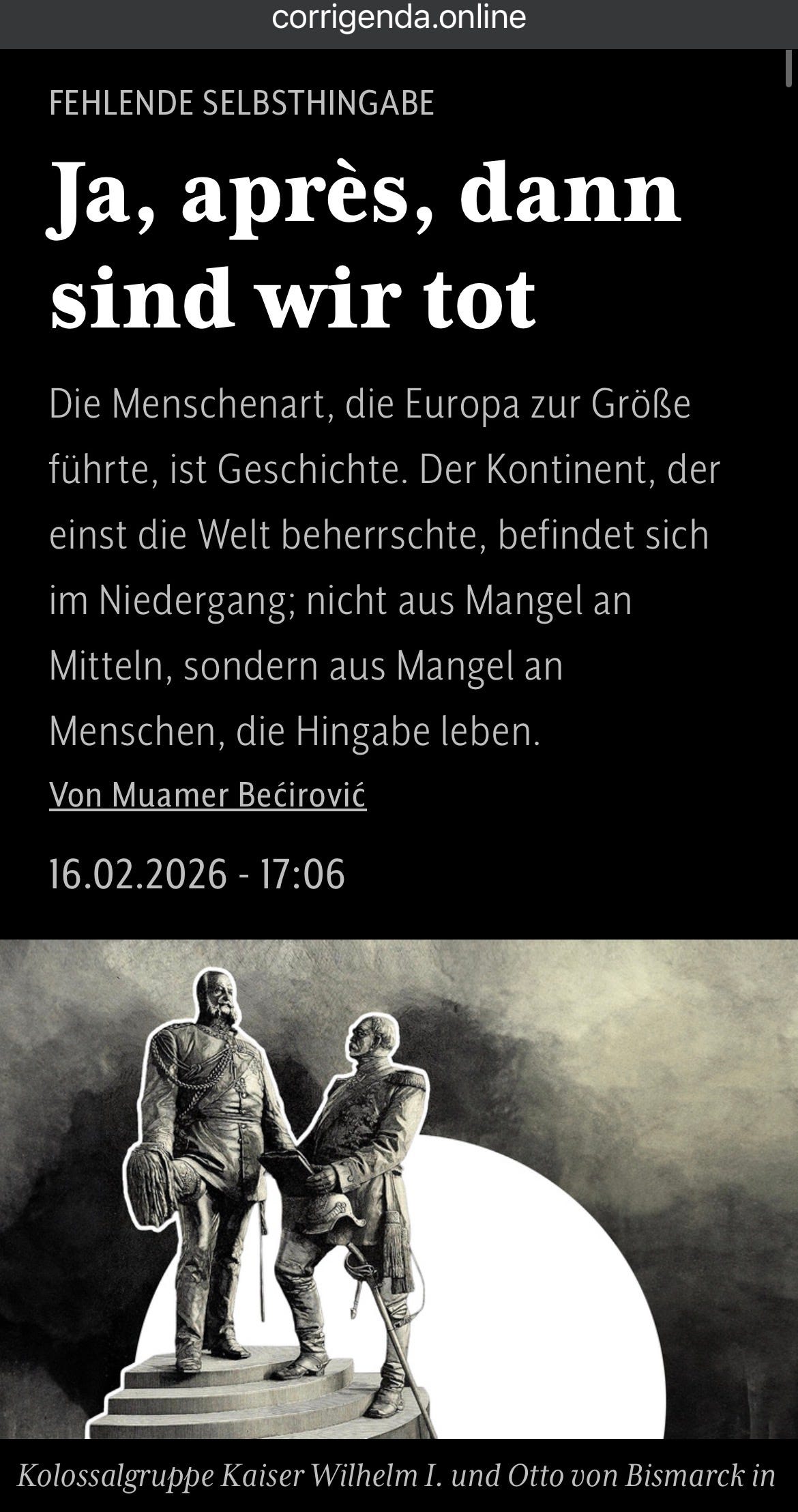 Ein Text über Hingabe, warum wir keine großen Menschen mehr hervorbringen und was Europa immer ausgemacht hat.